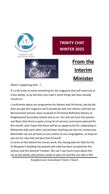 In May, 1982 a union took place between the congregations of St Margaret's and Netherton: St Matthew's, this building becoming the place of worship for the new charge of Knightswood St Margaret's Parish Church